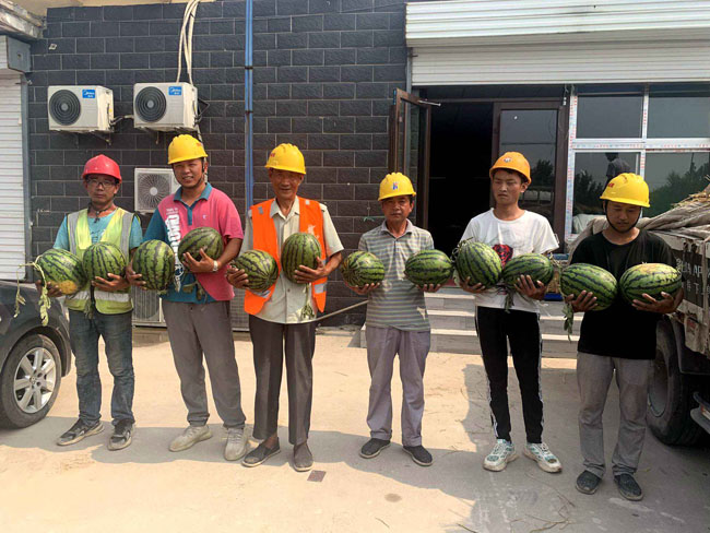 炎炎夏日,氣溫持續攀升,持續不斷的高溫給奮戰在施工一線的廣大建設者帶來了嚴峻的考驗。為切實做好防暑降溫工作,保障夏季施工安全,匯通公司工會分會積極組織開展“夏日送清涼”活動,為奮戰一線的施工人員送去一份清涼和關愛。 6月29日,帶著公司領導的關懷和囑托,工會工作人員采購了萬余斤西瓜看望慰問了堅守在施工一線的工作者。此次活動覆蓋濟南15個在建項目及市政分公司,為近2000名施工人員送去一份“涼爽”,確保每一位施工人員都能清涼度夏,用實際行動為他們撐起一片綠蔭。 匯通公司分會在集團工會的帶領下,長期堅持開展“夏送清涼”活動,并得到了廣大一線建設者的一致好評,有效帶動了施工人員戰高溫、斗酷暑
